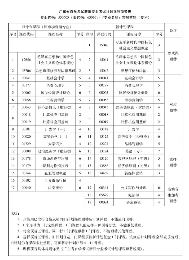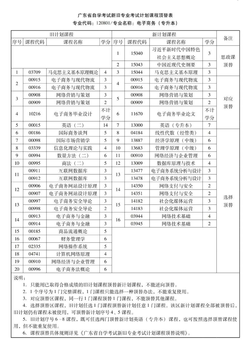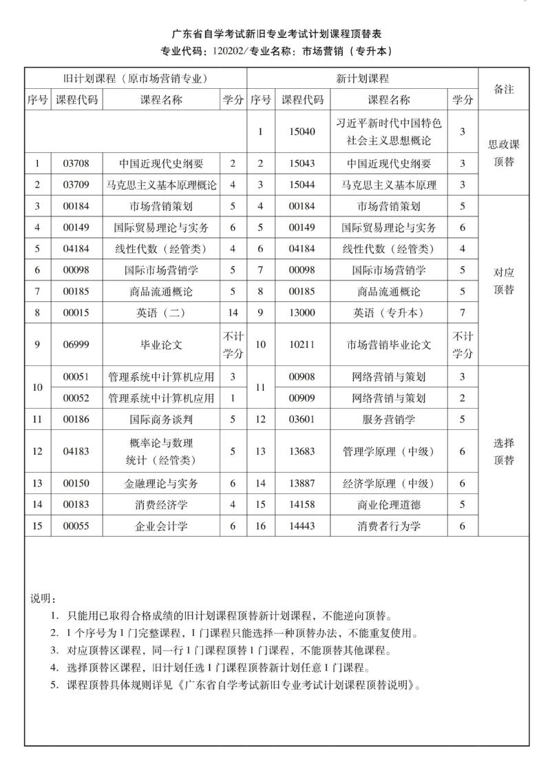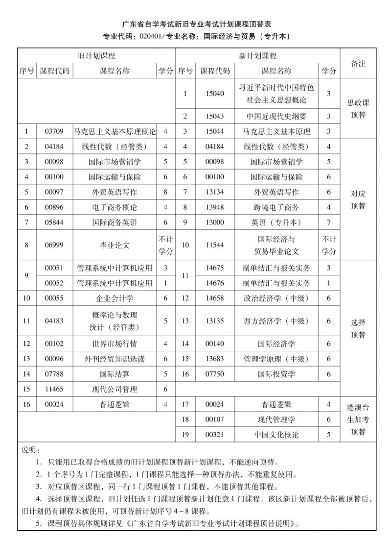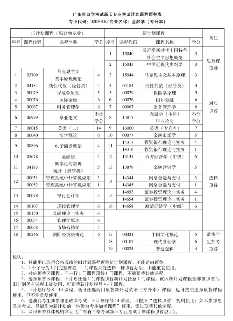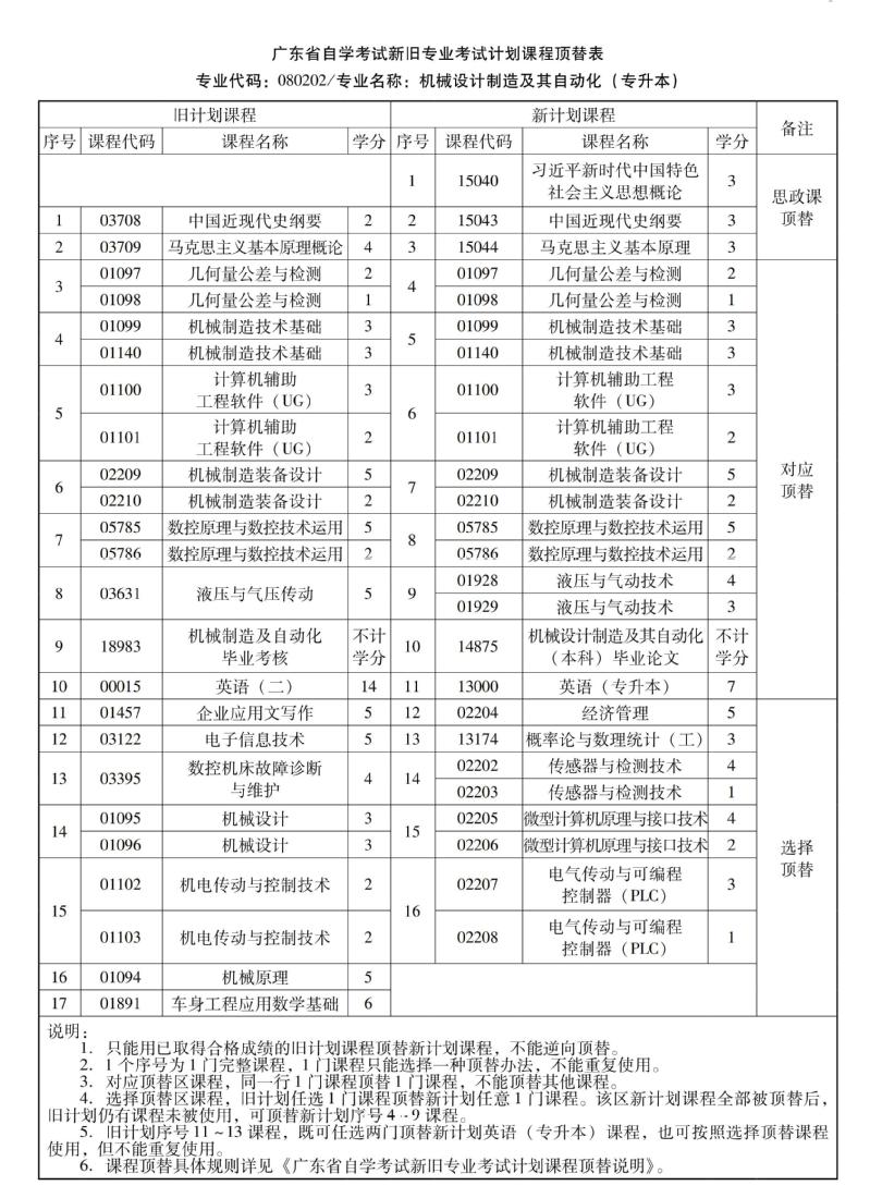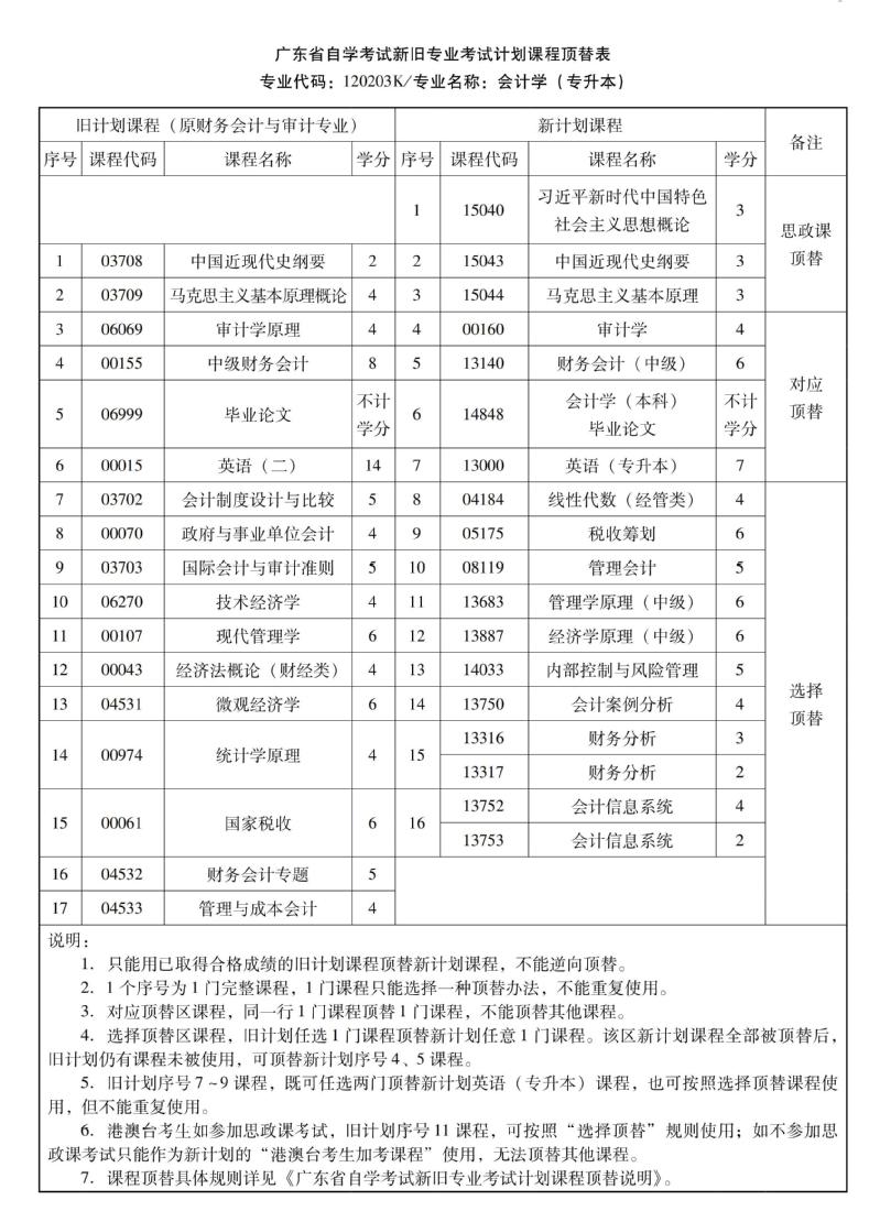 华南农业大学高等教育自学考试新旧专业考试计划课程顶替表