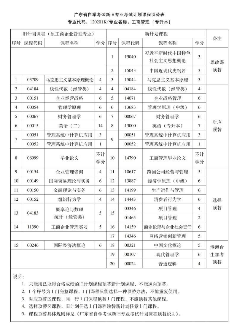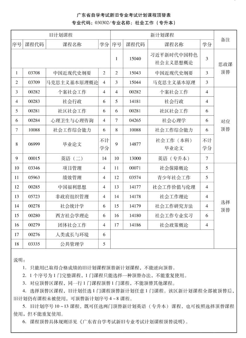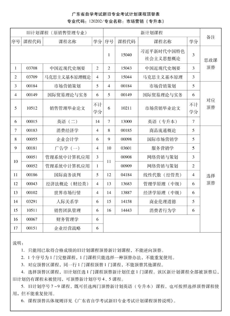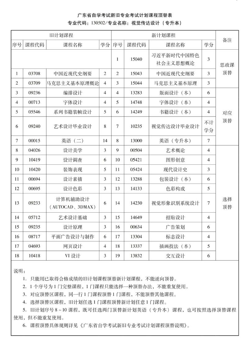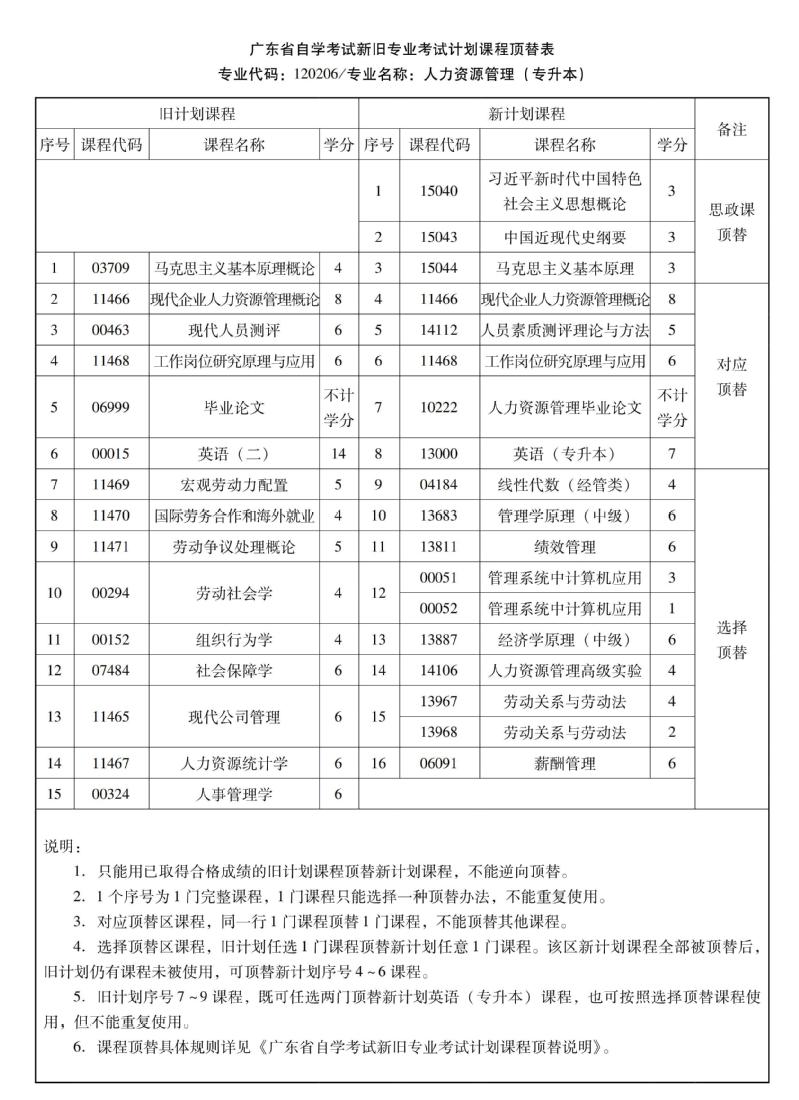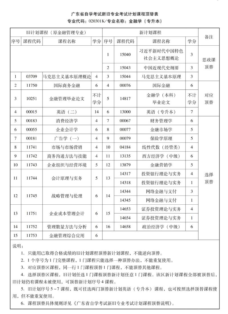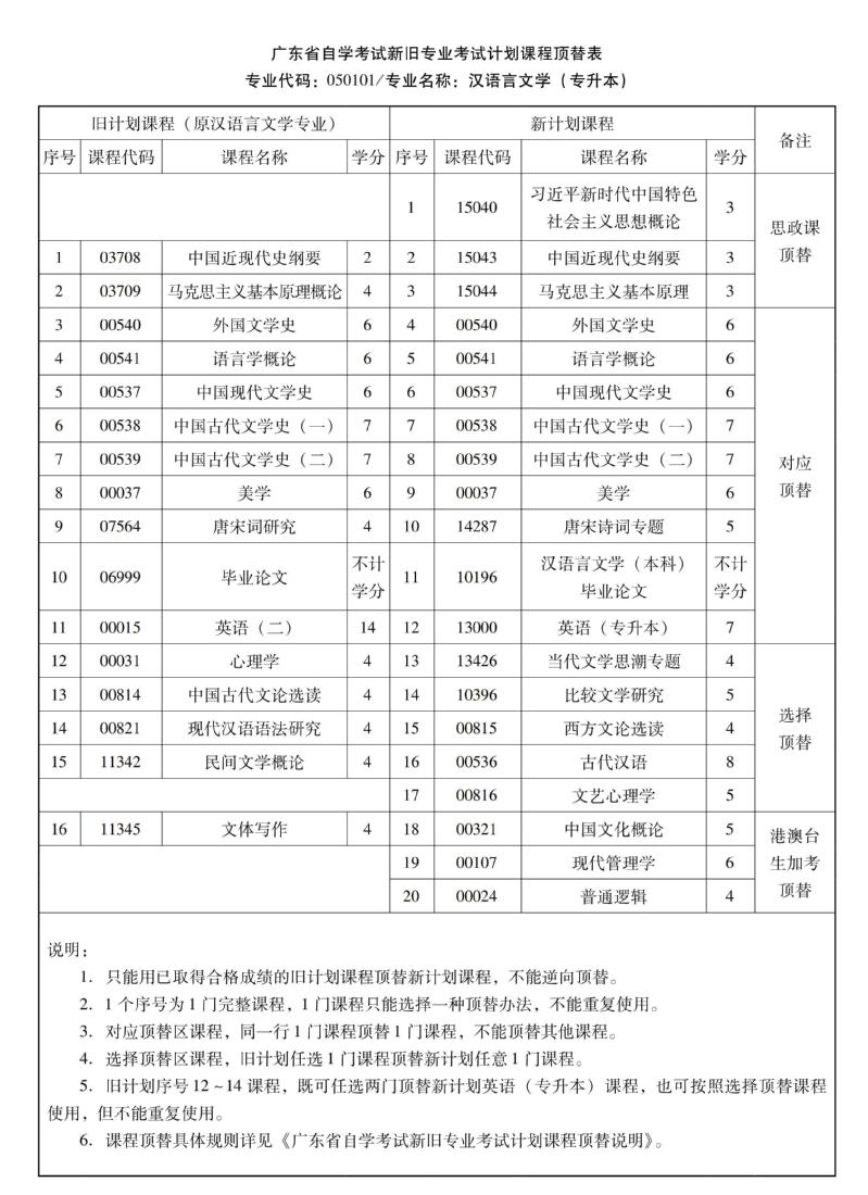 华南农业大学高等教育自学考试新旧专业考试计划课程顶替表