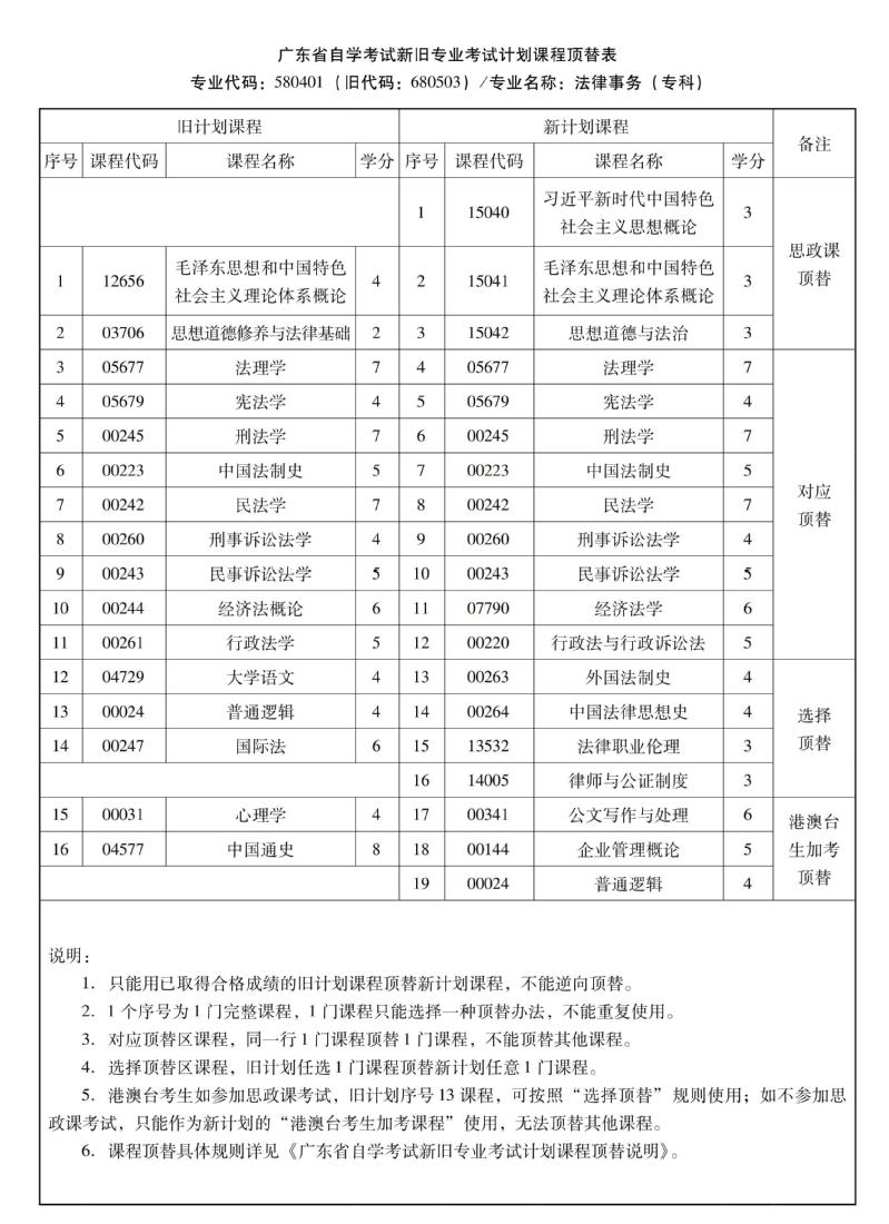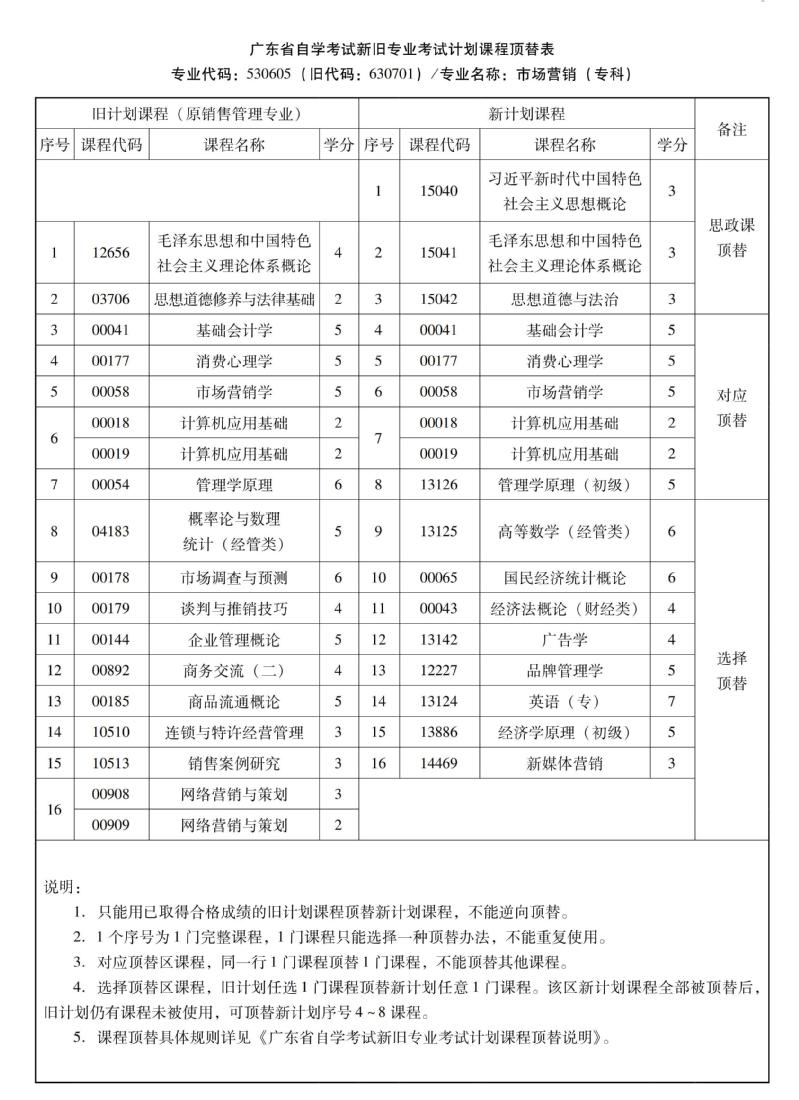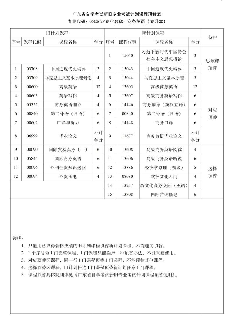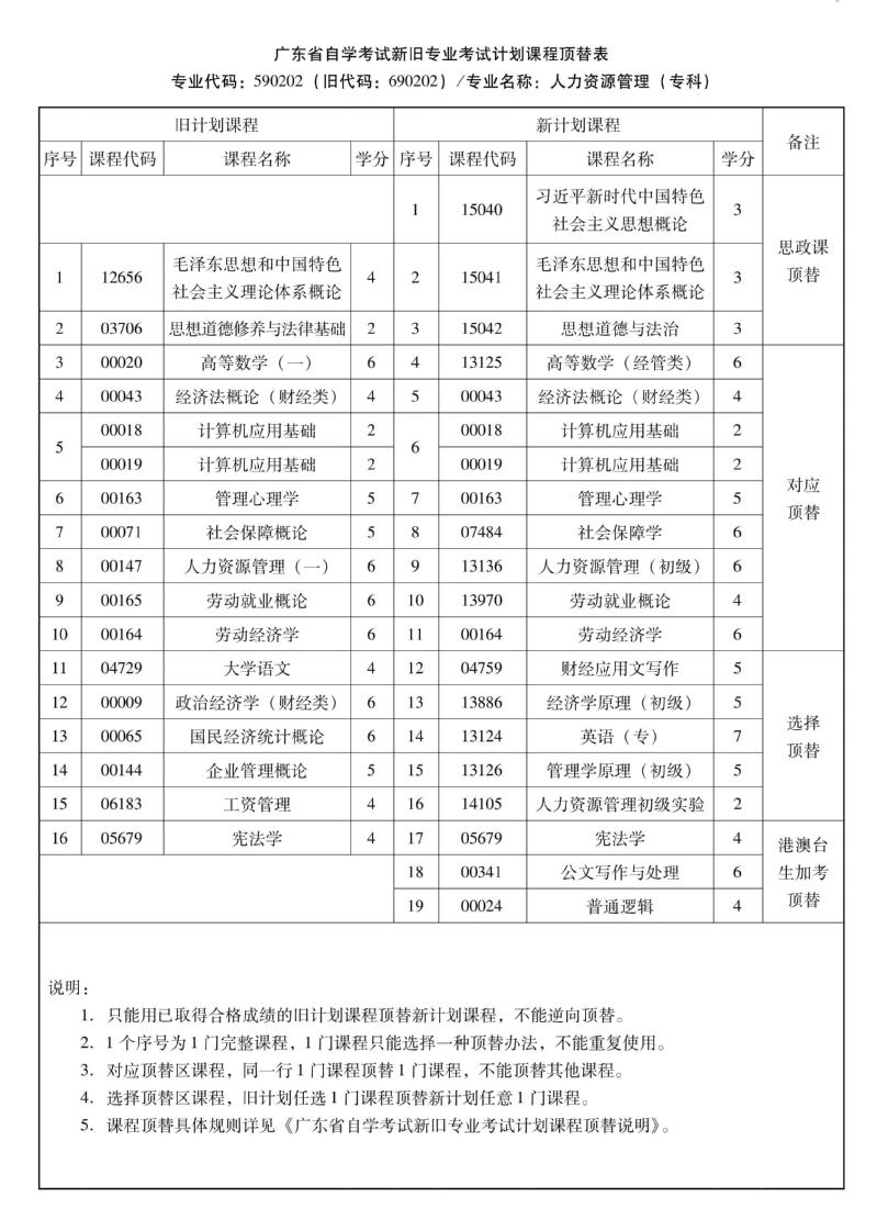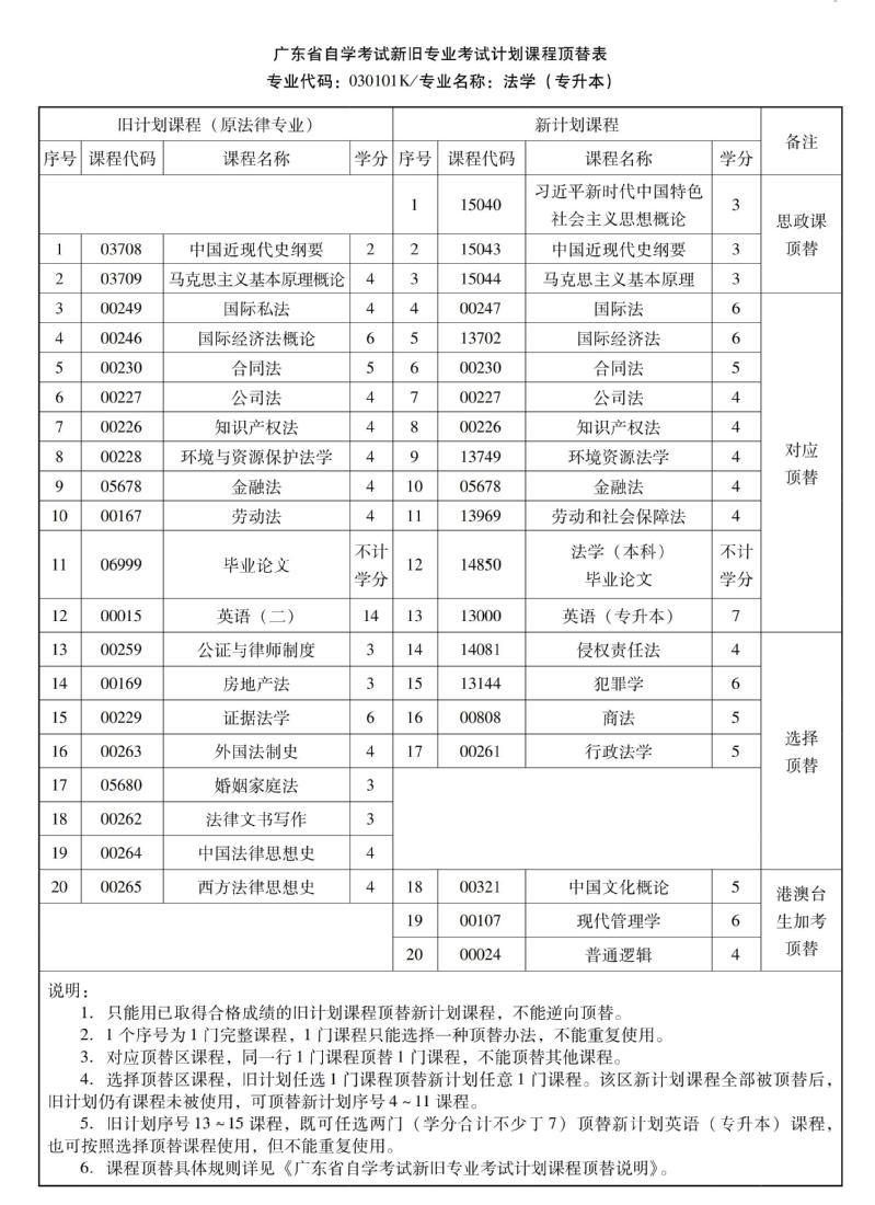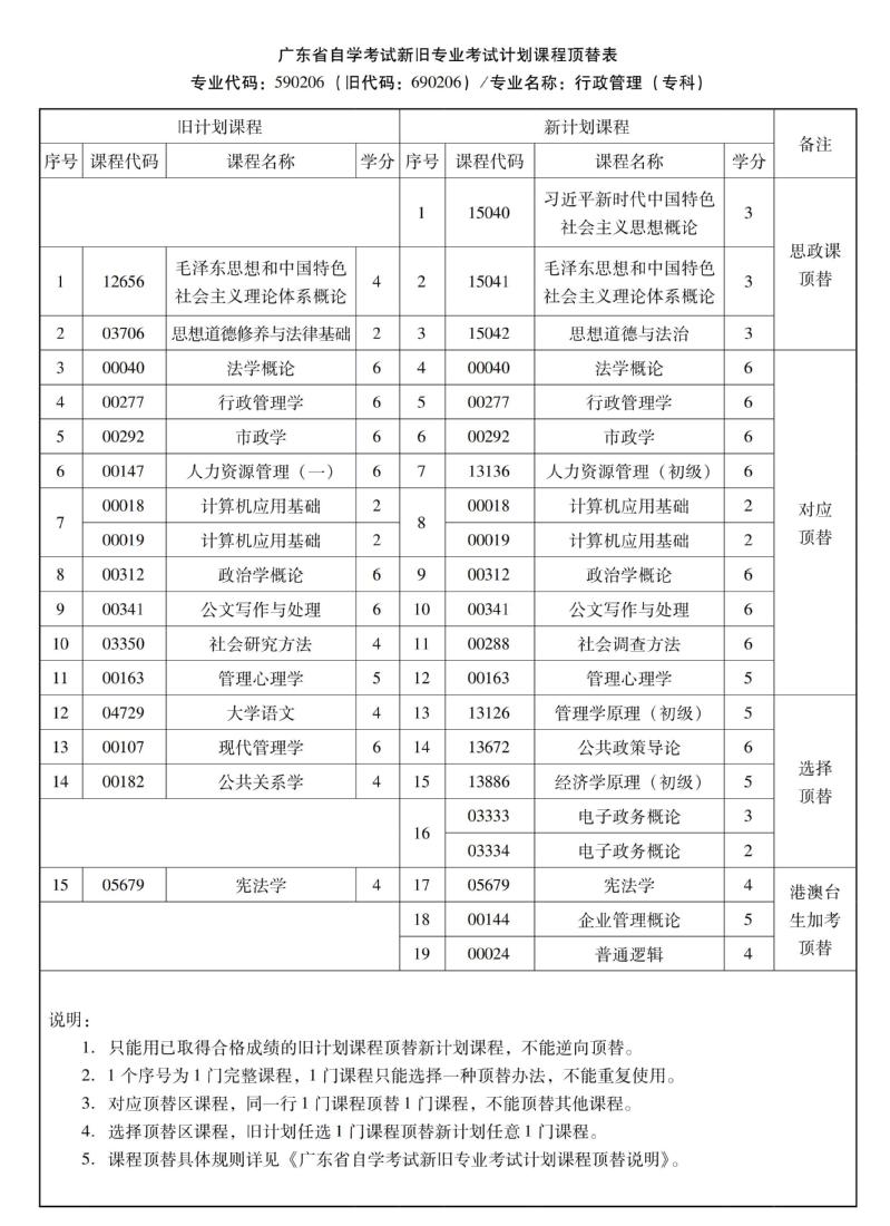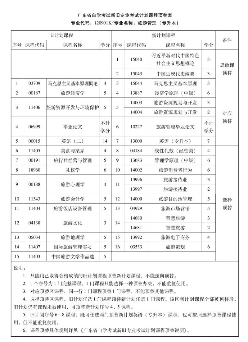华南农业大学高等教育自学考试新旧专业考试计划课程顶替表