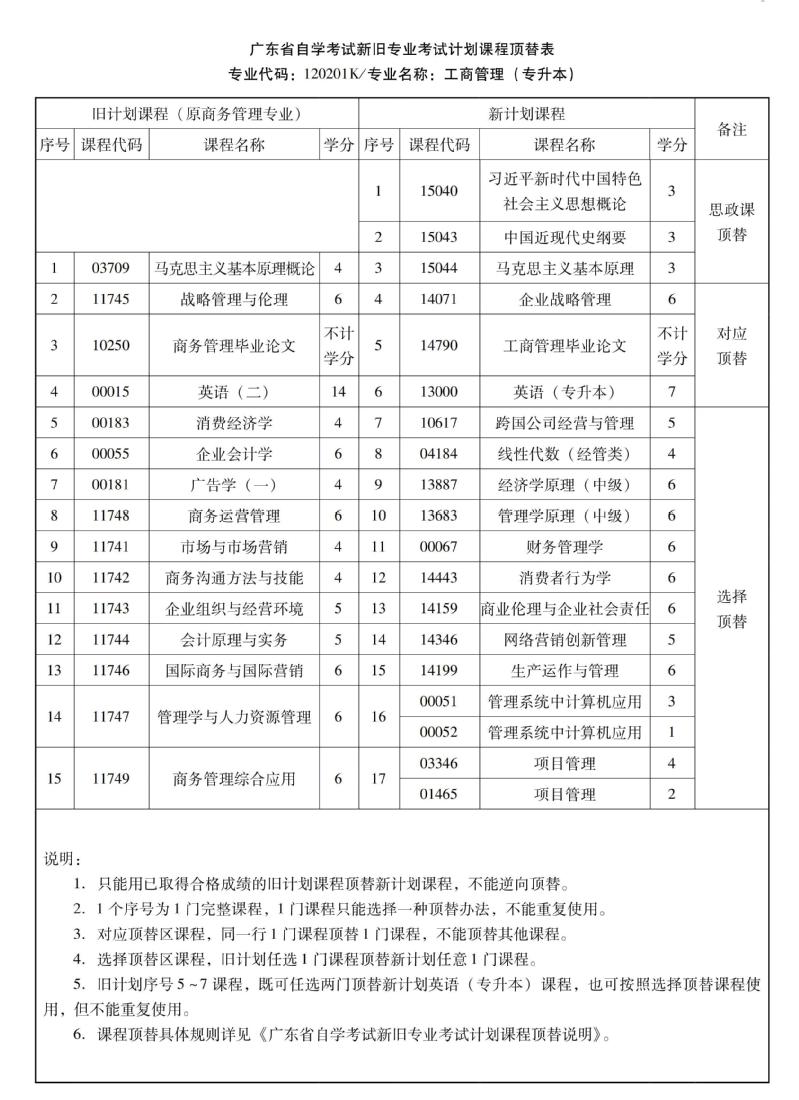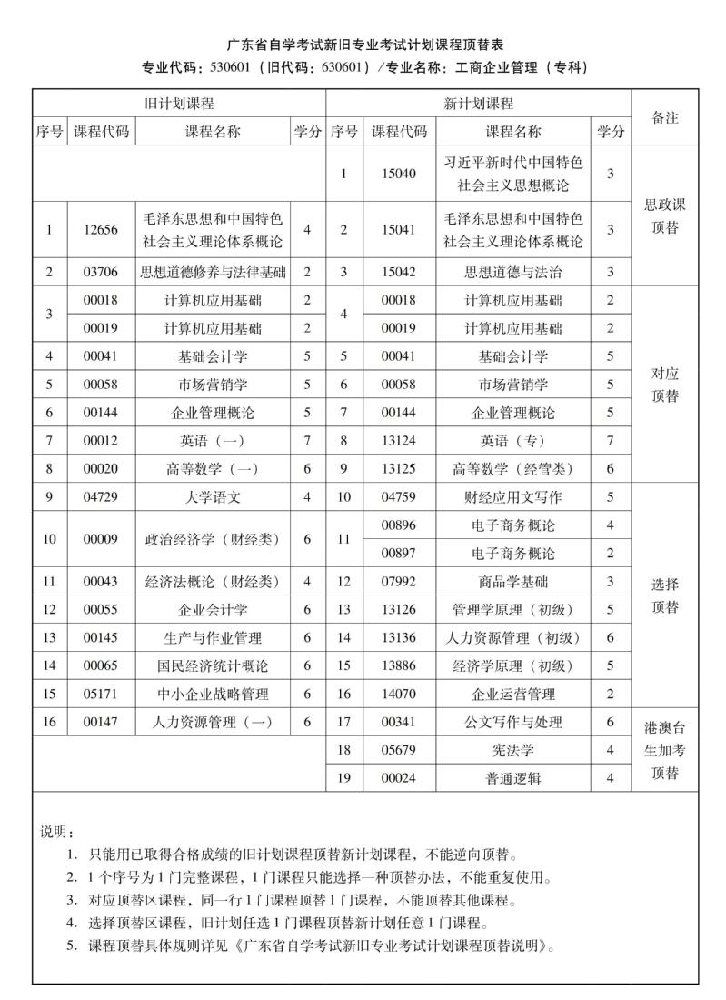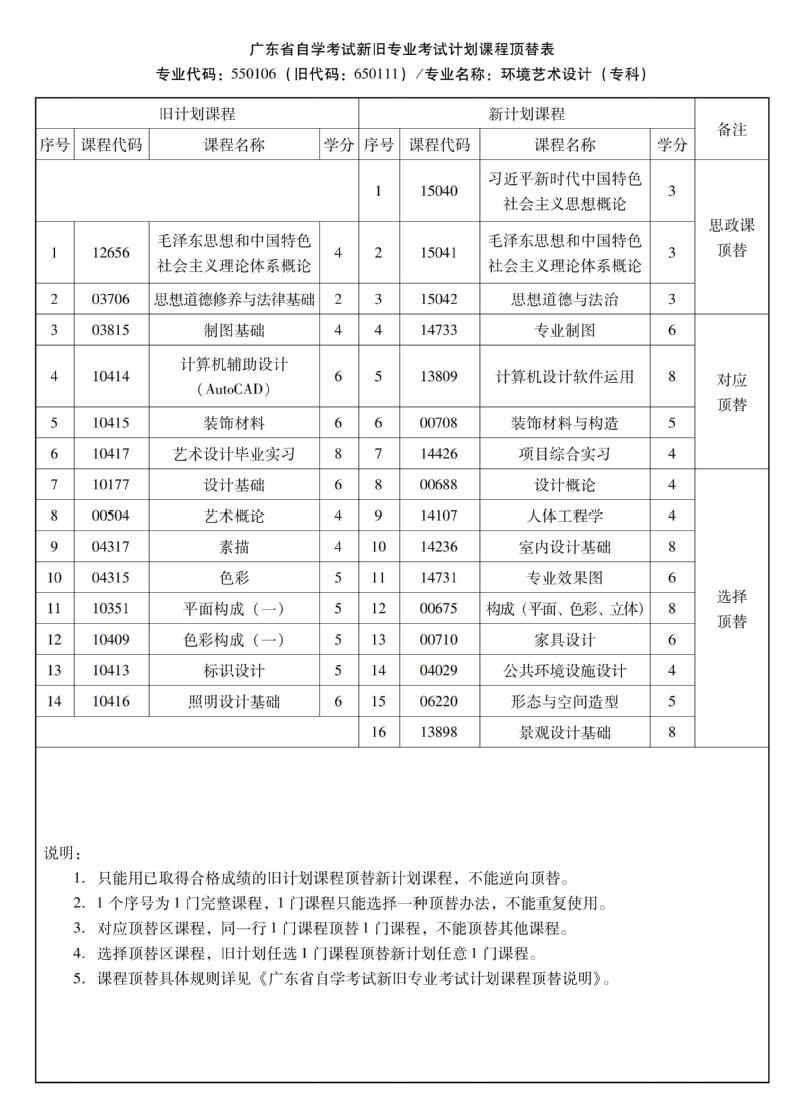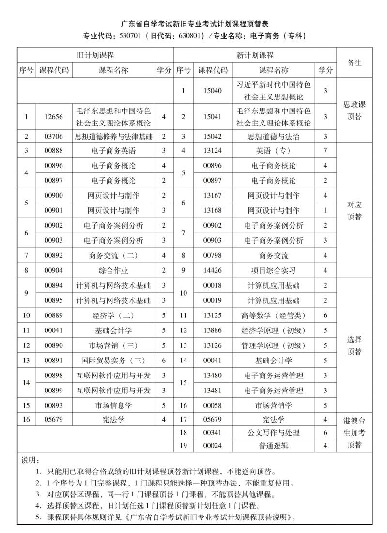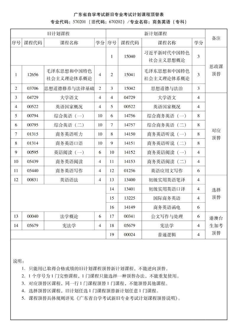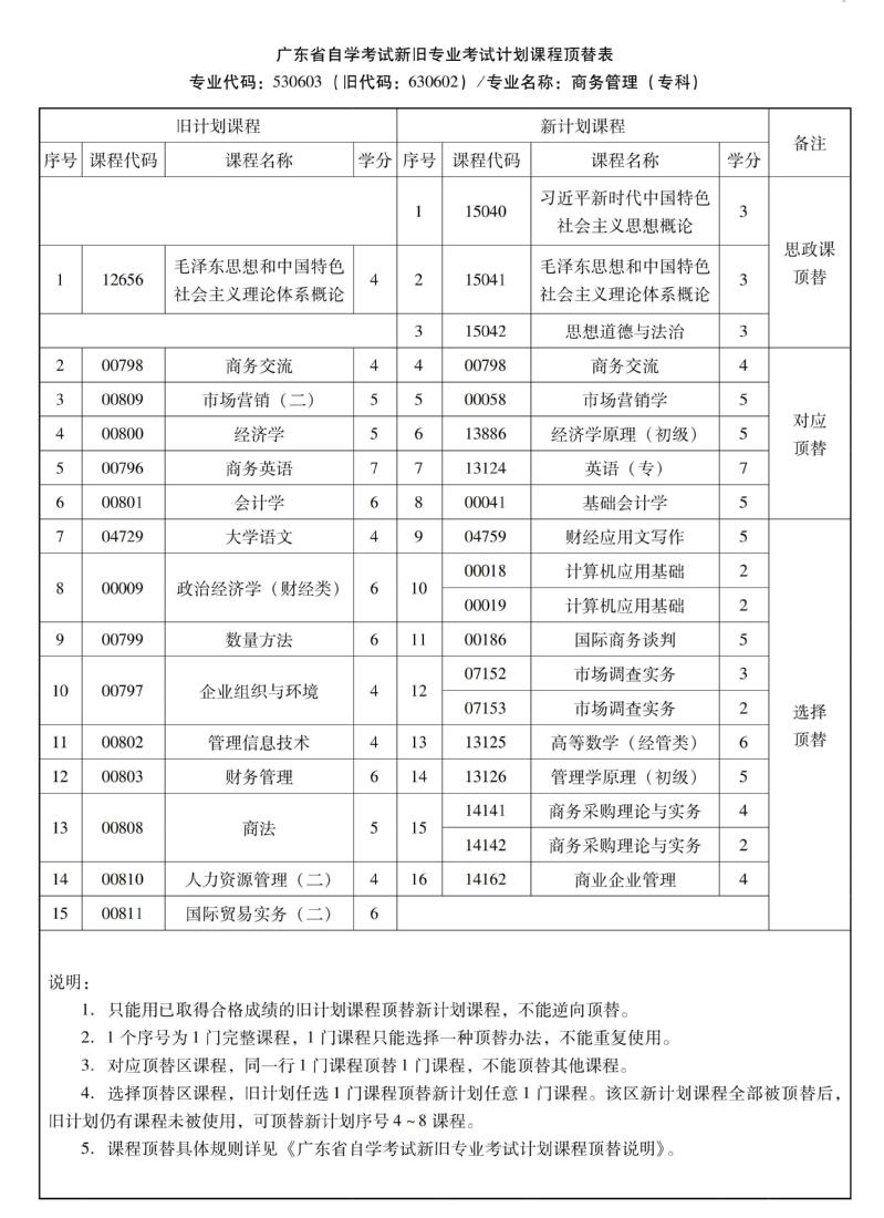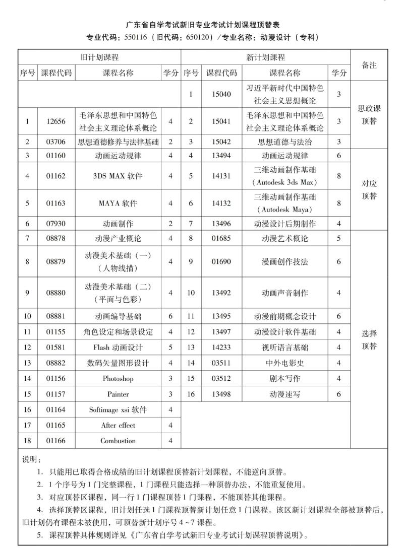 华南农业大学高等教育自学考试新旧专业考试计划课程顶替表